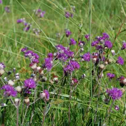 Discreet and resistant perennial herbaceous plant, of great ornamental value for its fruited flower shoots. During spring and summer it shows off its violet flower heads together with her white papus. These flowers and white pompoms light up flower beds, grasslands, green roofs, and gardens. Its aerial part disappears in winter, sprouting again in spring. Regular watering extends its bloom.