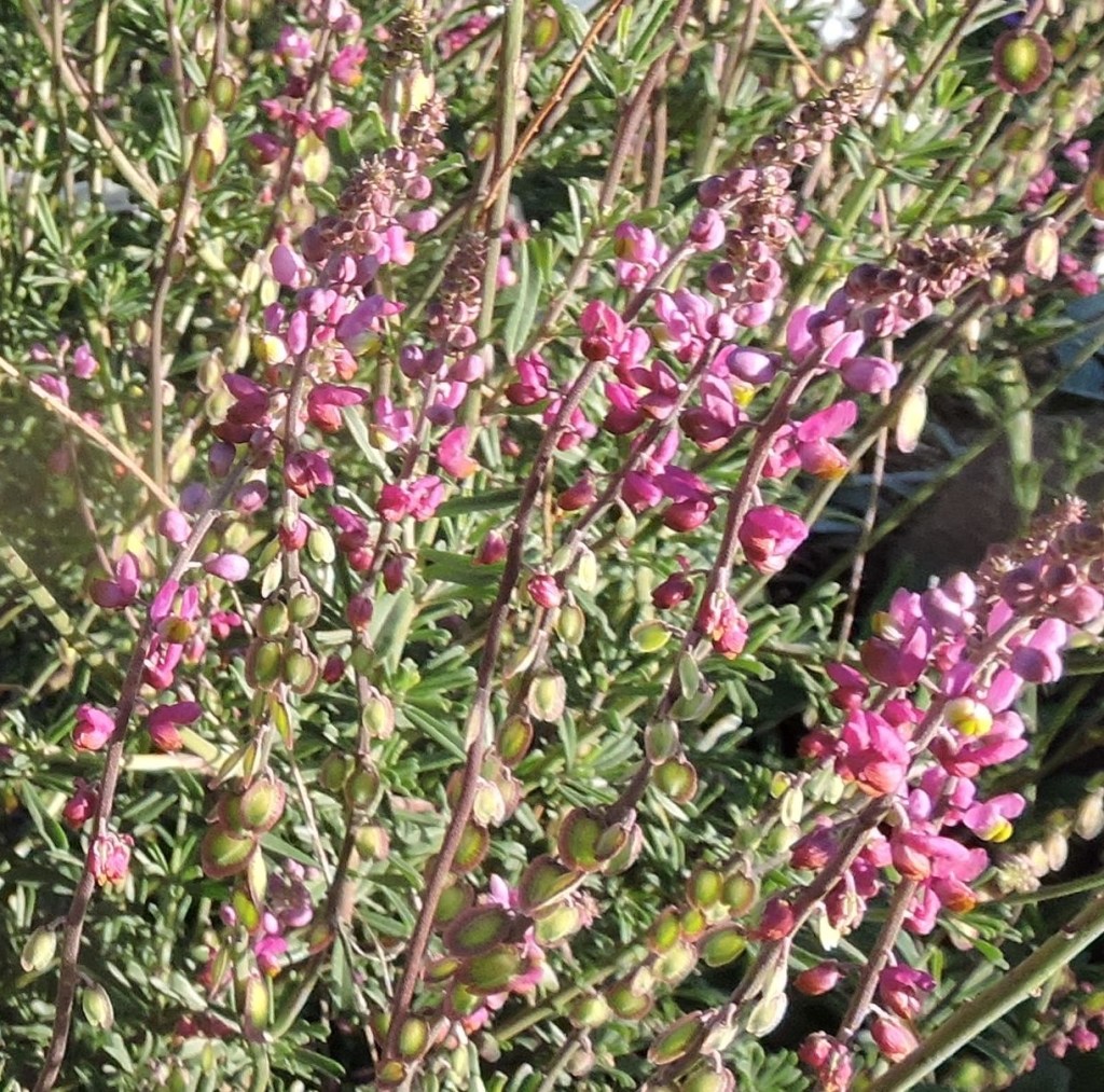 Herbácea perenne arbustiva que crece tanto en el matorral psamófilo como en las sierras. Brinda numerosas espigas de pequeñas flores color fucsia junto con vistosas sámaras ovaladas que contienen la semilla. Su belleza y alegría se luce desde primavera hasta fines de otoño en jardines costeros, maceteros, rocallas, pastizales y techos verdes. Prefiere lugares soleados y suelos permeables. Tolera la sequía, la lluvia y el viento.