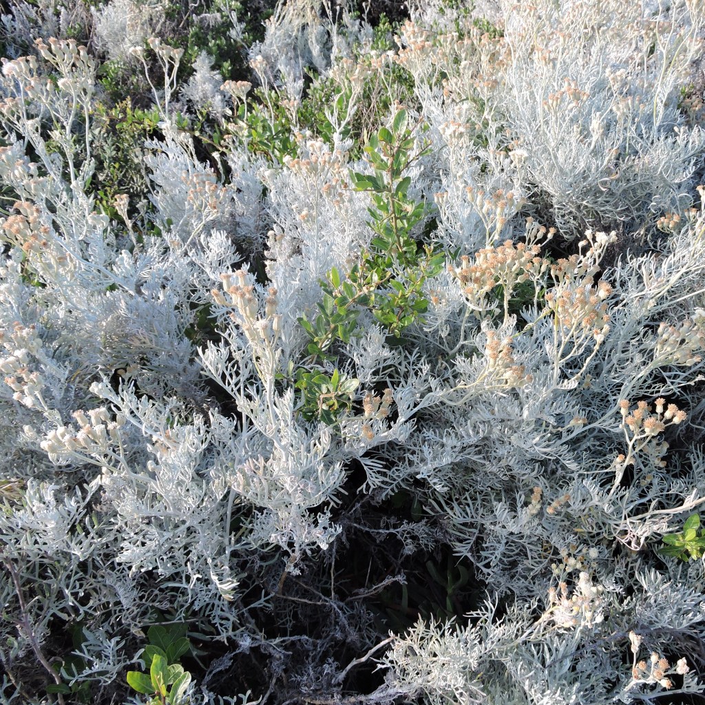 Herbácea perenne que ilumina la comunidad del matorral psamófilo con su atractivo follaje gris-plata. Tiene gran valor ornamental, ya que brinda un interesante contraste en techos verdes, canteros, maceteros y jardines, luciendo sus abundantes flores color blanco crema durante la primavera. Prefiere lugares soleados y suelos permeables. Tolera sequía, lluvia y viento.